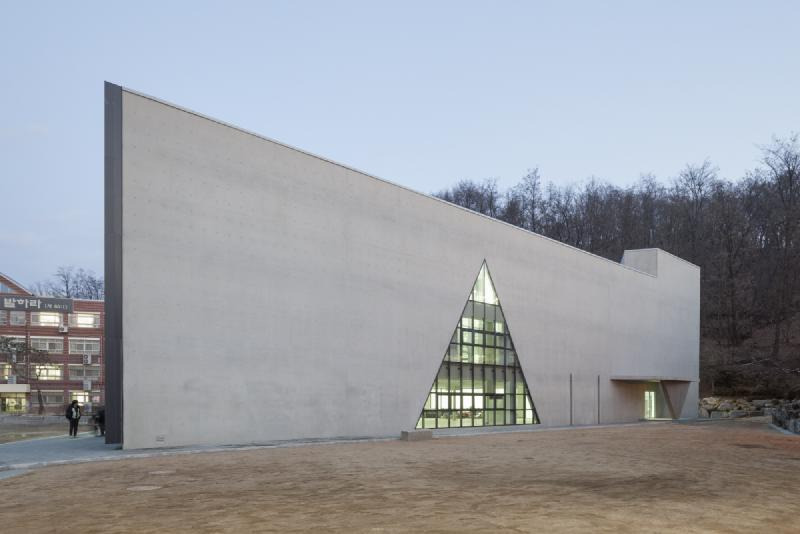 남양주시 도농동. 서울 인근의 이 조용한 마을에 낯선 기하가 나타납니다. DH 트라이앵글 스쿨. 삼각형 하나로 학교 건축의 새로운 가능성을 제시한 이 프로젝트는 NAMELESS Architecture와 남궁선 건축가가 함께한 실험이자, 배움의 공간에 대한 근본적 질문에서 출발합니다.