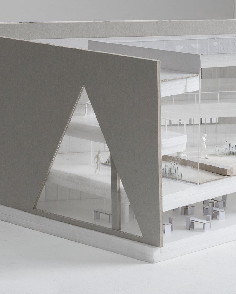 트라이앵글 스쿨은 고정된 형태 이상의 가능성을 보여줍니다. 외부로는 경계에 따라 다르게 반응하면서도 내부로는 모든 요소를 하나의 열린 구조로 통합합니다. 단단한 외피와 유리 루버, 노출 콘크리트와 테라조 마감 등 서로 다른 재료의 조화는 경계와 중심을 함께 말합니다.