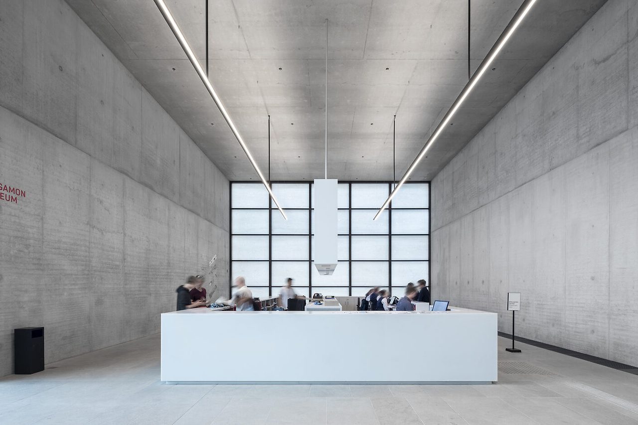 박물관 섬의 중심 진입 공간으로 기능하는 이 건물은