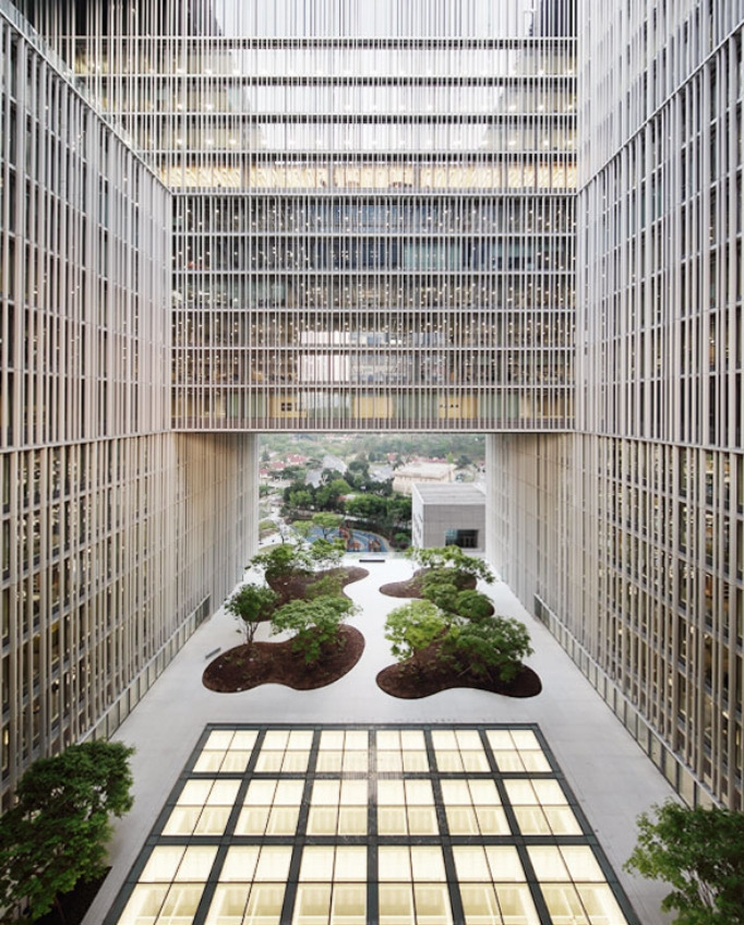 한옥의 마당 개념을 현대적 오피스 타워에 도입한 프로젝트입니다.