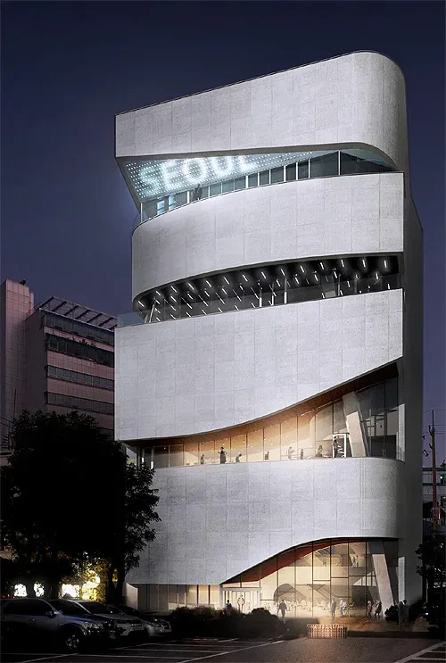 - 곡선적 구조와 조명, 플레이트, 조경까지 통합적 설계