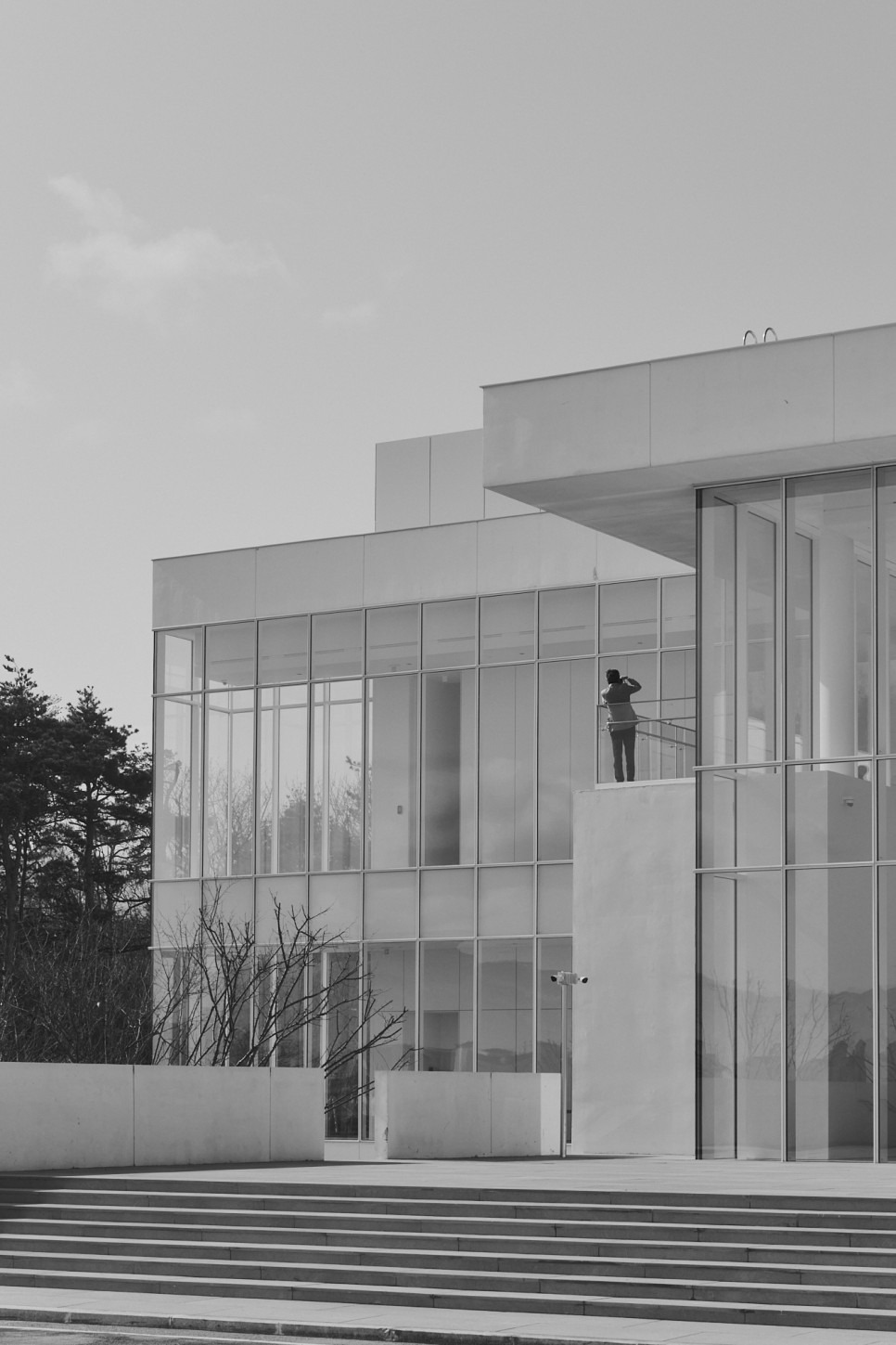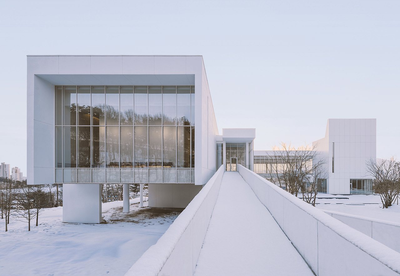 건축은 소나무 숲 사이, 고도차가 있는 언덕 위에 위치해 다양한 동선에서의 조망을 유도하며, 내부 중정을 통해 자연과 시각적으로 연결되도록 구성되었습니다.