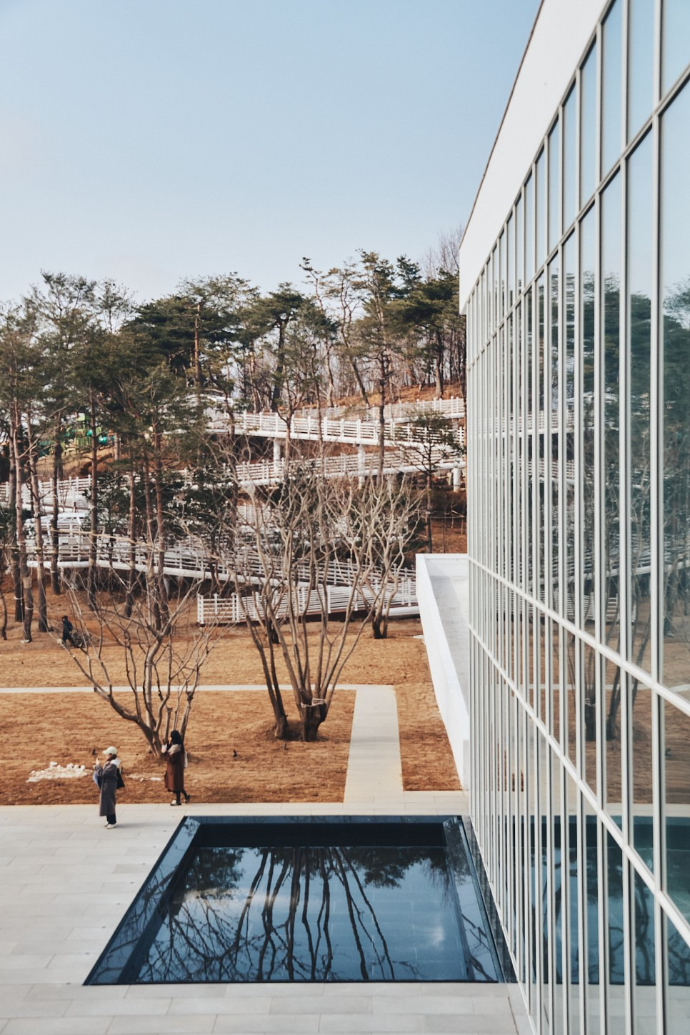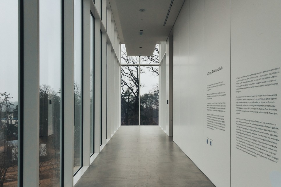미술관은 중앙 중정을 중심으로 세 동이 유기적으로 배치되었으며, 전시 공간, 카페, 로비, 아트숍 등으로 구성됩니다. 건축은 기능을 넘어서 자연과의 연결고리를 제안하며, 미술관 자체가 하나의 풍경이자 조형물이 됩니다.
