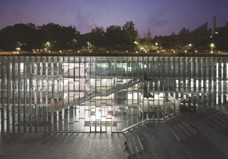 - 지하 6층 규모지만, 지상처럼 환하고 여유 있는 공간감을 선물합니다. 학생과 시민 모두를 위한 강의실, 열람실(최대 950석), 영화관, 공연장, 피트니스 센터, 카페 등 복합문화공간으로 구성되어 있습니다.