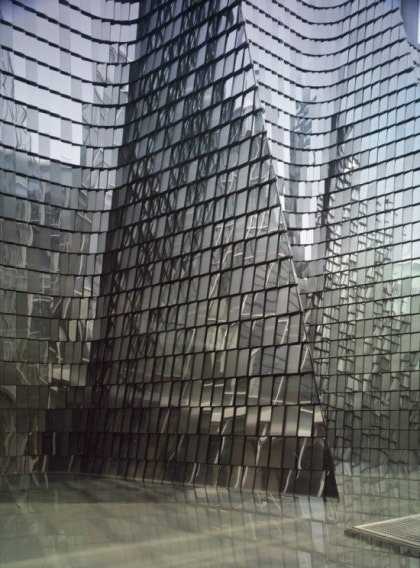 - 양쪽으로는 마치 유리 절벽처럼 보이는 커튼월 유리 + 스테인리스 핀이 설치되어 자연광을 내부로 끌어들이며 ‘빛의 폭포’를 만들어냅니다.