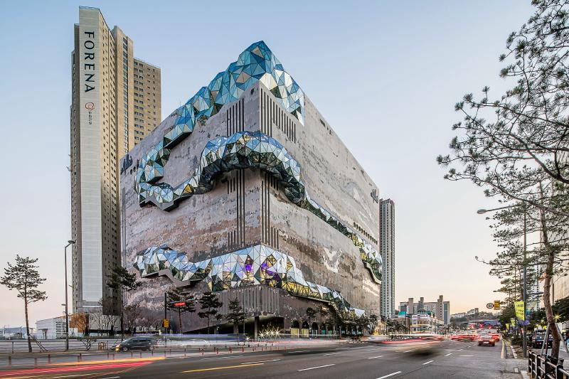 - 주변의 무색무취한 건물 사이에서 이 백화점은 광교의 공공성과 도시성을 새롭게 정의하는 랜드마크로 자리 잡는다.