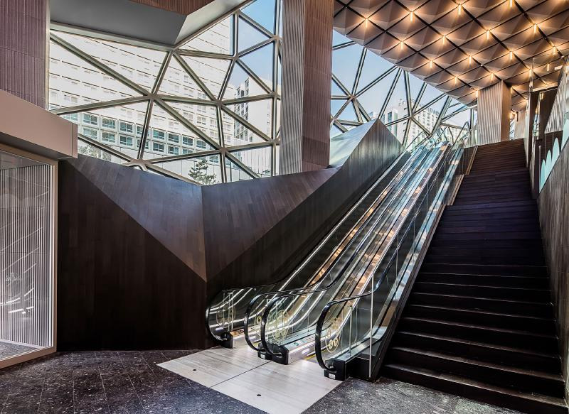 1970년대 설립된 한국 최초의 고급 백화점 브랜드 '갤러리아'는 오랜 시간 프리미엄 리테일 문화를 선도해왔다. 서울 남쪽에 새롭게 조성된 도시, 광교의 중심에 자리 잡은 여섯 번째 갤러리아는 고층 아파트에 둘러싸인 신도시에서 마치 대지에서 솟아오른 조각처럼 등장한다.
