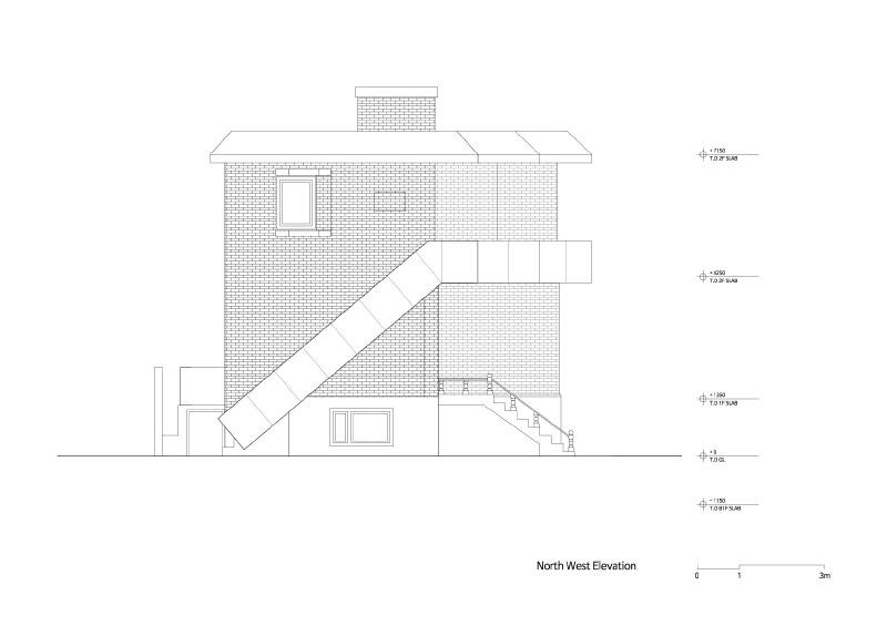 외관은 기존 벽돌과 유사한 색감의 모르타르를 덧씌워 통일감을 주었고, 계단 손잡이는 유광 컬러 스테인리스 패널로 감싸 세련된 감성을 더했다. 실내 마감은 극도로 절제되어 있어 기존 구조의 흔적과 재료의 질감이 오롯이 드러난다.